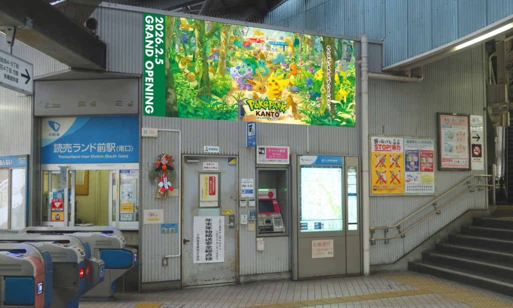 ポケモン初の屋外常設施設「ポケパーク カントー」の開園を目前に控え、新百合ヶ丘駅・読売ランド前駅や、周辺の路線バス(一部車両)が、同施設の世界観を表したイラストによって彩られます。