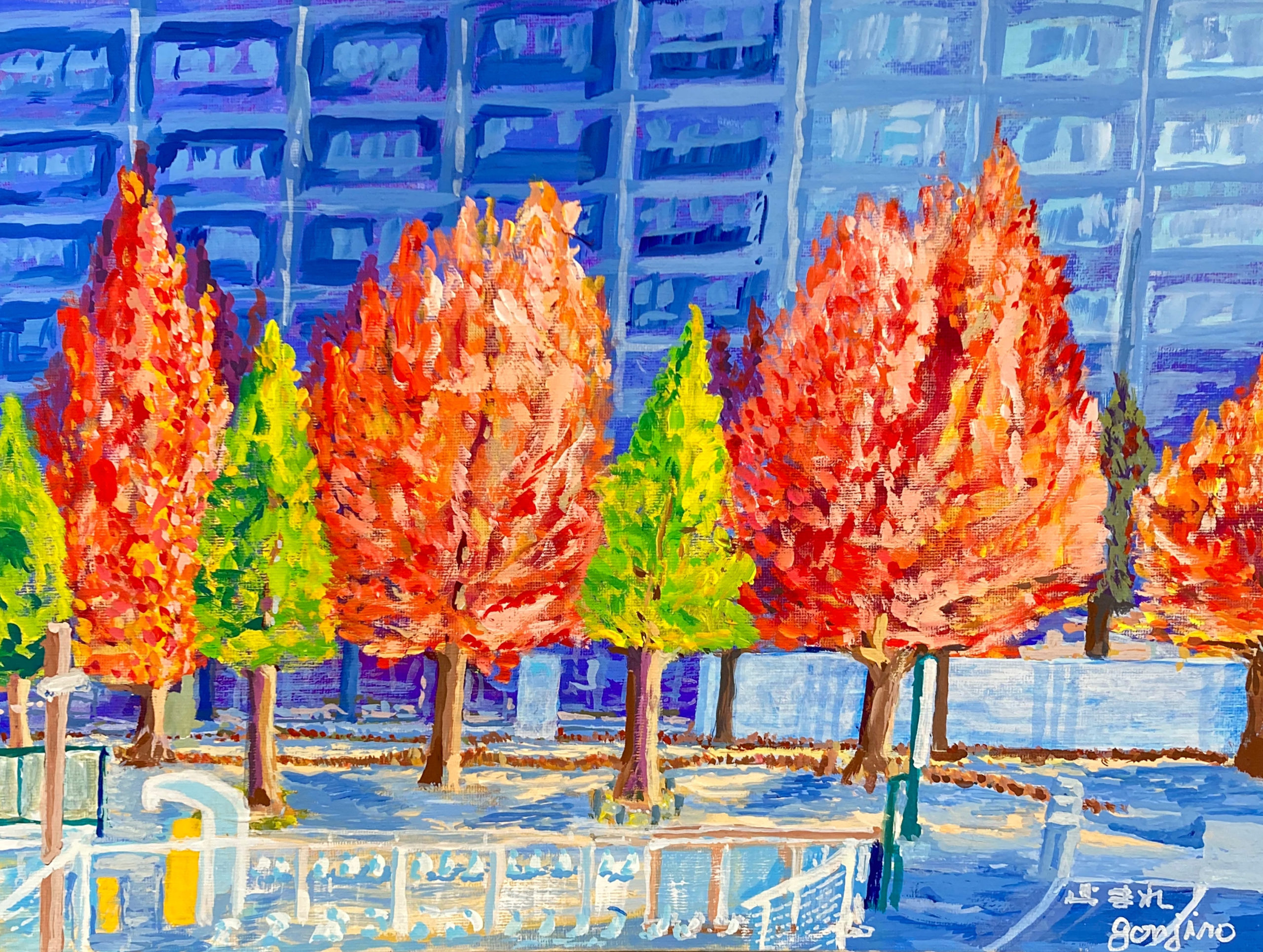 同絵画展は、麻生区の好きなところやお気に入りなど、まちの”好き“を絵にしていただくことで、川崎市の北に位置する麻生区からも川崎市市制100周年をお祝いするという目的のもと、募集を行いました。
